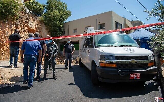 Police at the scene of where Sahar Ismail, the Education minister's aide for Arab society, was found murdered in his home, in the northern Israeli town of Rameh. August 15, 2021. Photo by FLASH90 *** Local Caption *** øöç ú÷ååä çãùä