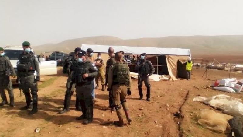 وأفادت مصادر محلية بأن قوات الاحتلال وزّعت حتى اللحظة تسعة إخطارات بهدم بيوت بلاستيكية تعود لمواطنين في الجهة الشمالية من القرية، وتزيد مساحتها الإجمالية على 30 دونمًا.