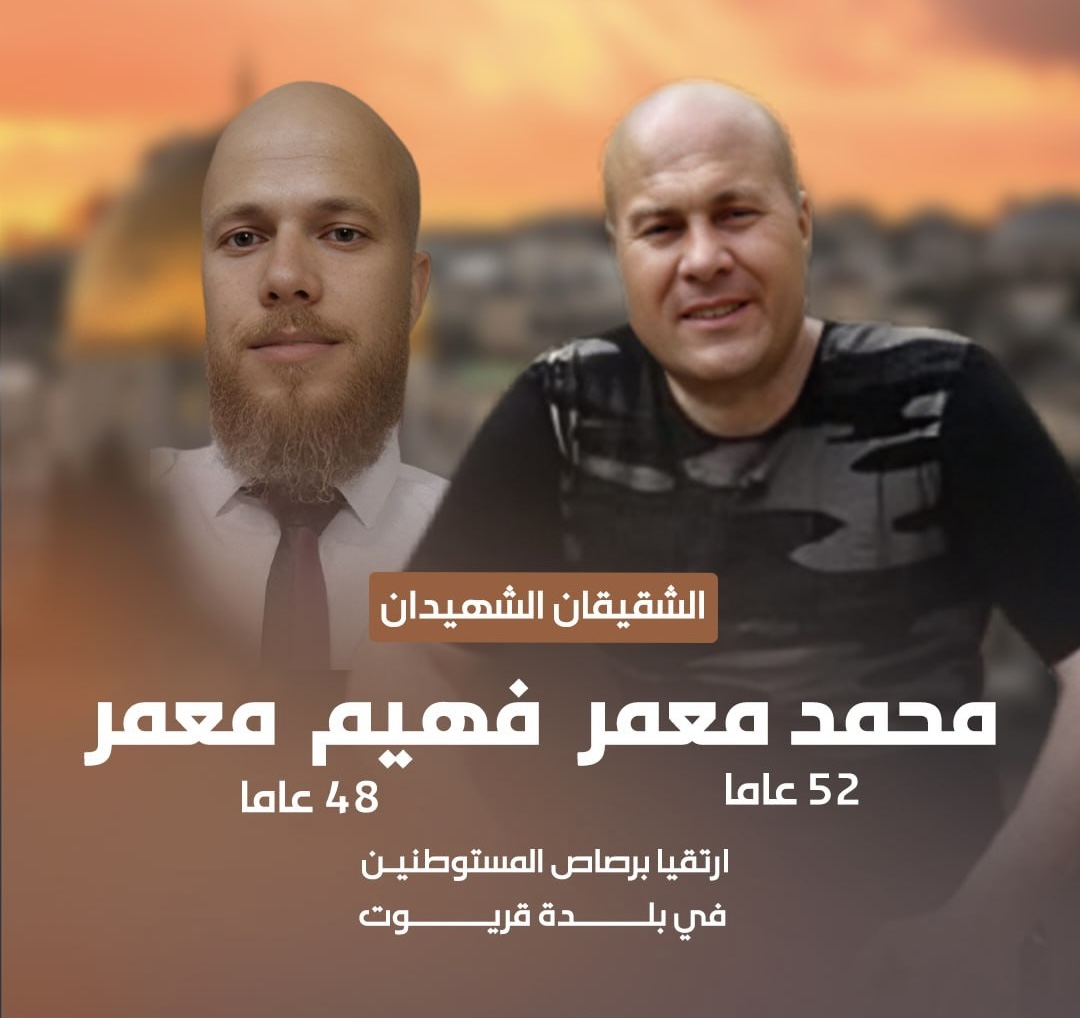 استشهد الشقيقان محمد طه معمر (52 عامًا) وفهيم طه معمر، اليوم الاثنين 2 آذار/مارس 2026، خلال هجوم نفذته مجموعات من المستوطنين على قرية قريوت جنوب شرق نابلس، في تصعيد خطير شهدته القرية وأسفر أيضًا عن عشرات الإصابات بين المواطنين وإحراق مركبات واستهداف منازل.
