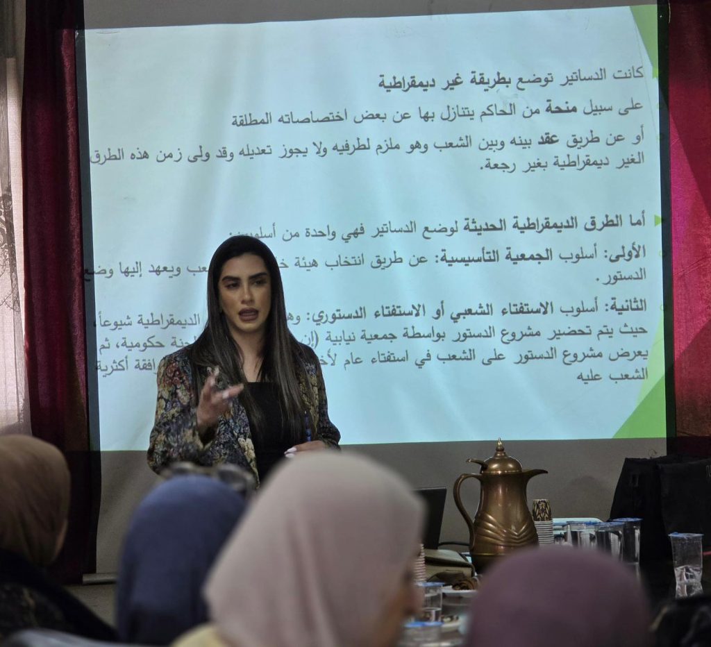 وخلال اللقاء، تم استعراض ومناقشة المبادئ الدستورية الأساسية، خاصة المرتبطة بالمواطنة وحقوق المرأة، في سياق تعزيز المشاركة المجتمعية في صياغة الدستور، بما يسهم في توسيع دائرة الحوار العام والتأثير في العملية الدستورية.