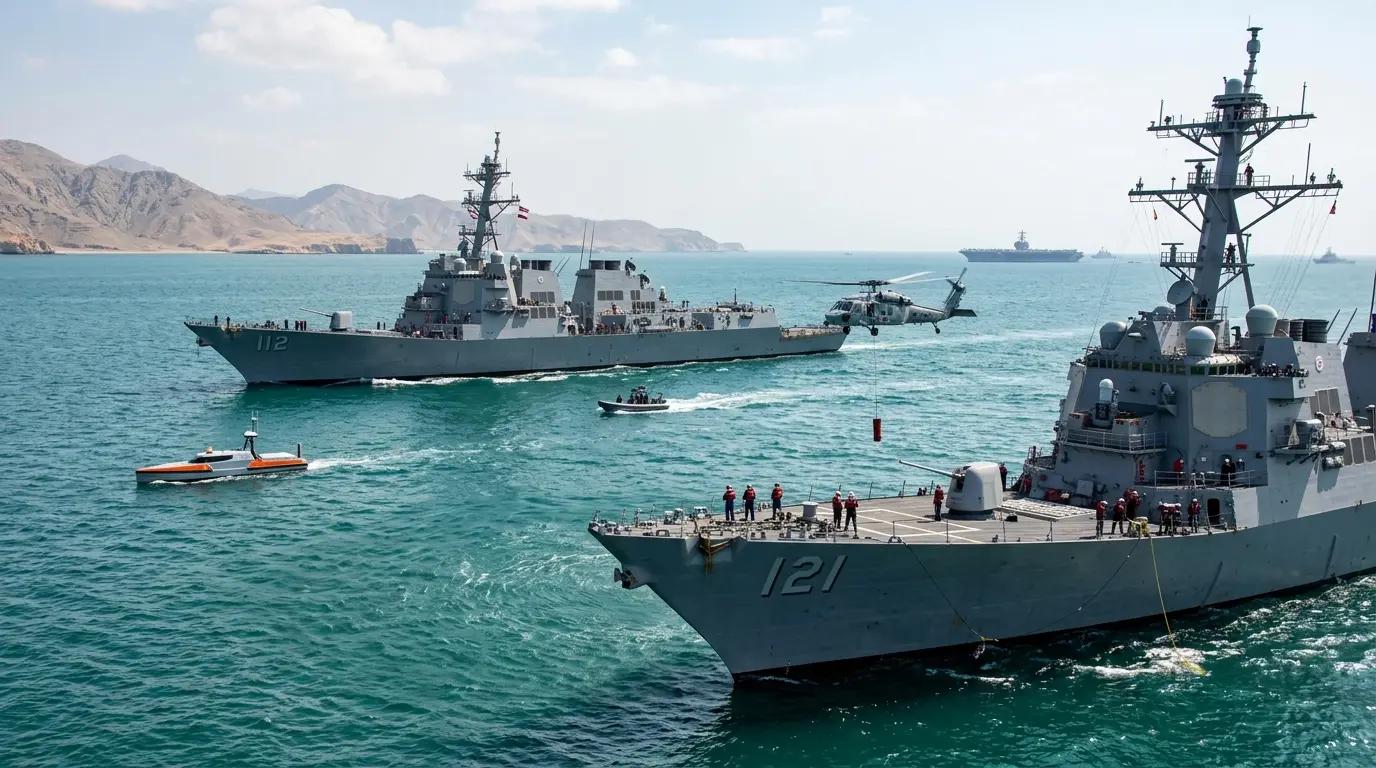 وخلال عطلة نهاية الأسبوع، عبرت المدمرتان الأمريكيتان USS Michael Murphy وUSS Frank E. Peterson المضيق، في خطوة يُرجّح أنها هدفت إلى إثبات إمكانية الملاحة الآمنة، وليس تنفيذ عمليات إزالة ألغام فعلية، نظراً لعدم تخصصهما في مهام مكافحة الألغام.